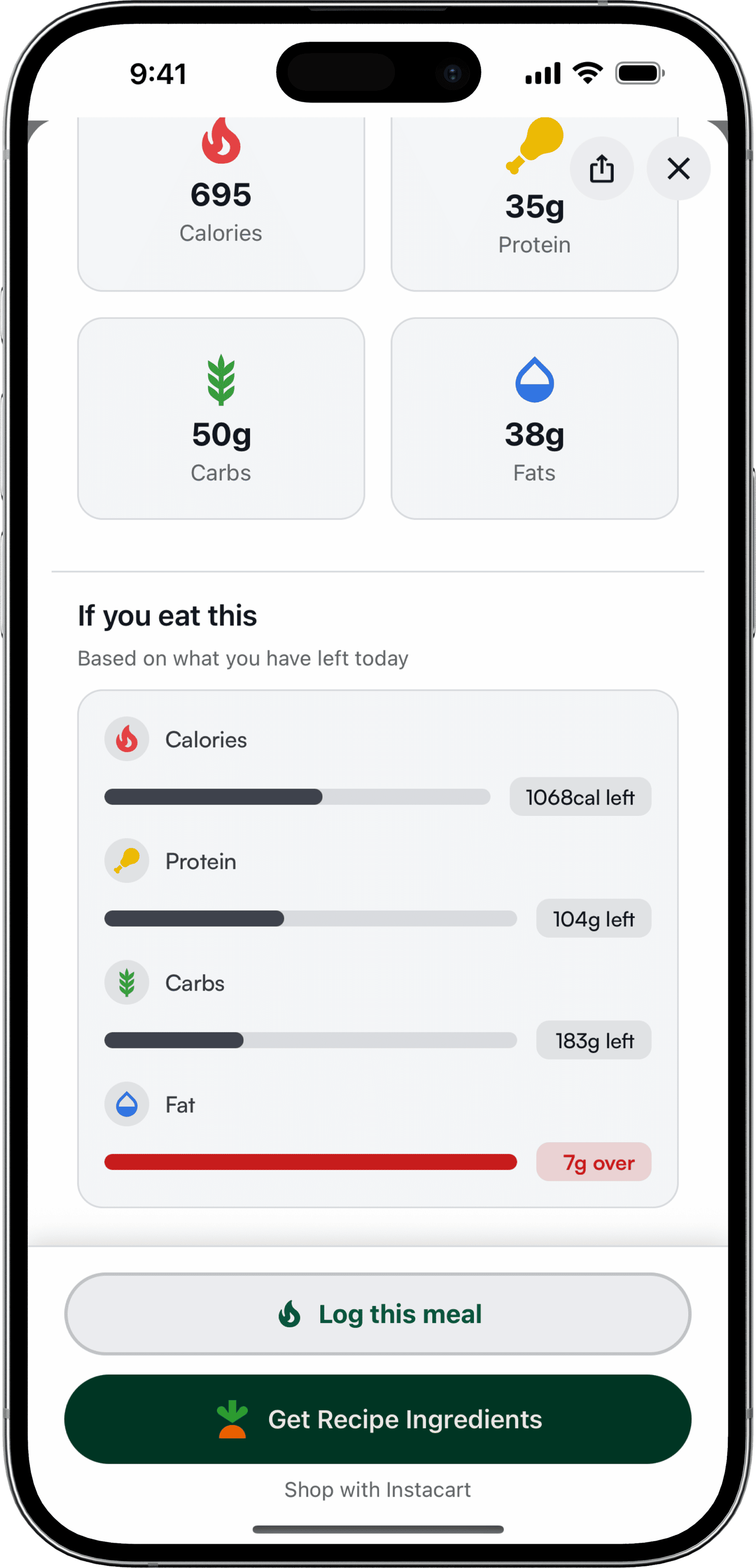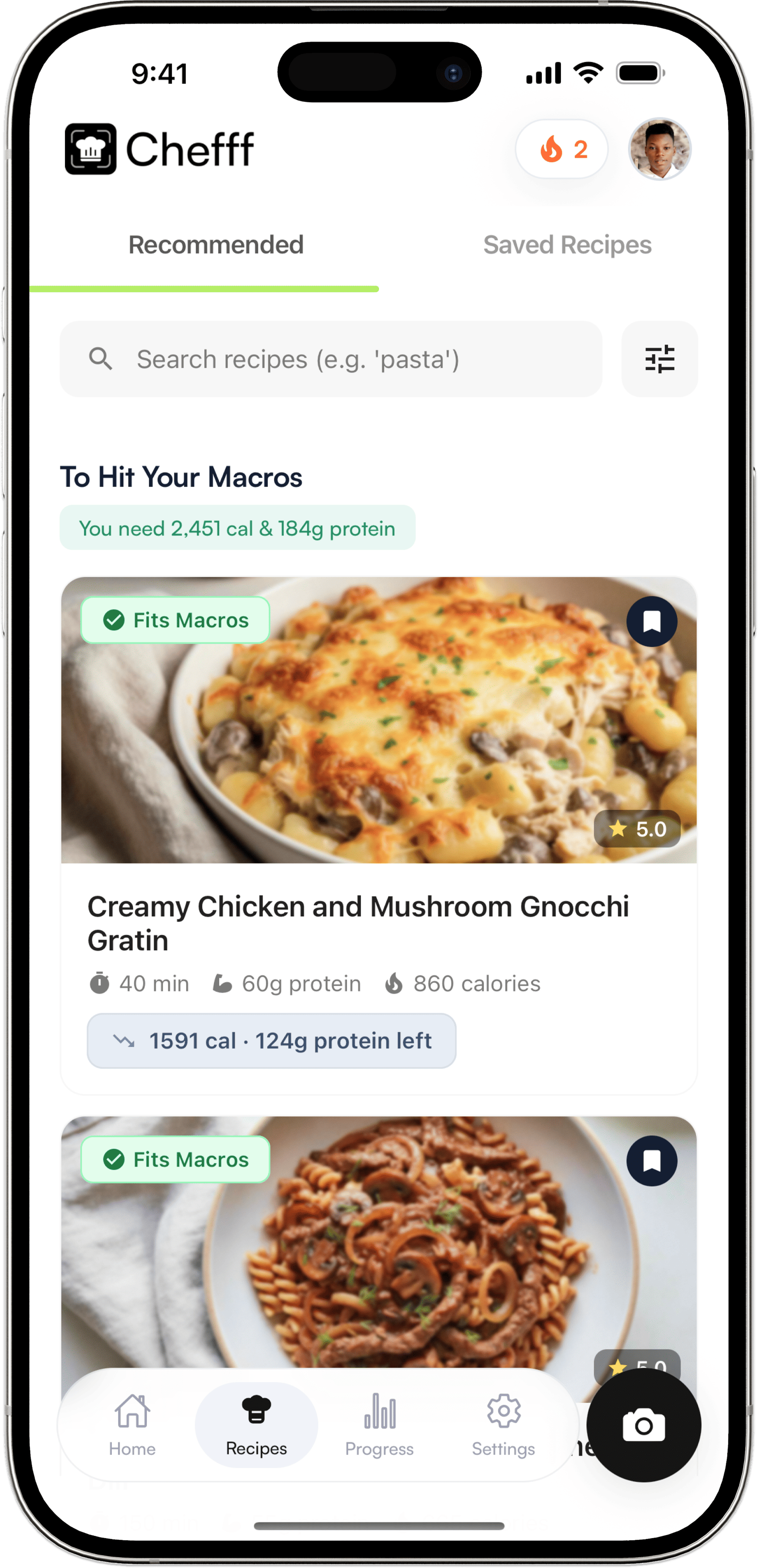 Not sure what to eat to stay on track? We do the math for you. Chefff suggests delicious recipes that perfectly fit your remaining daily calories and macros.