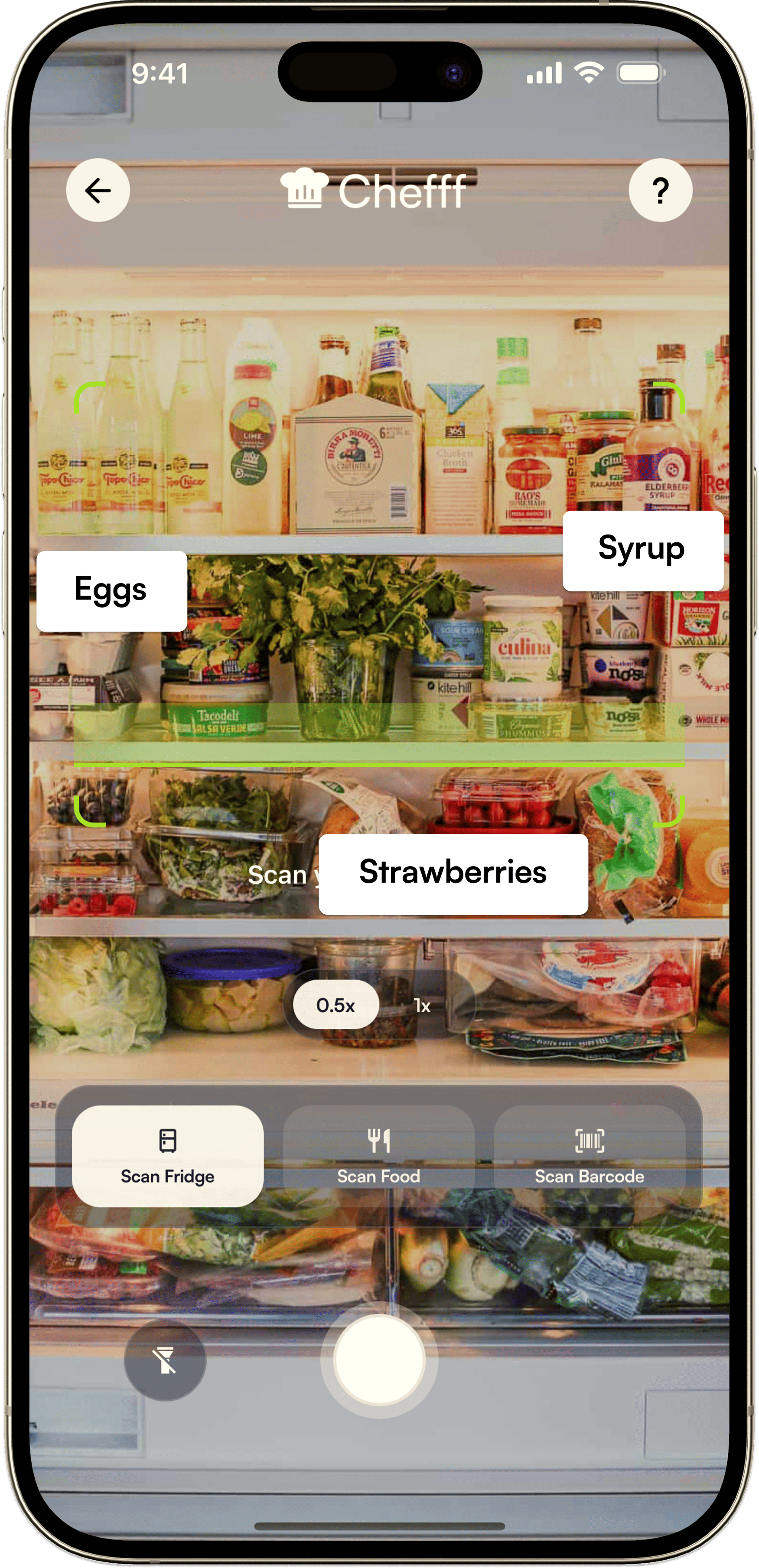 Snap a photo or barcode to log your food. Scan your fridge for